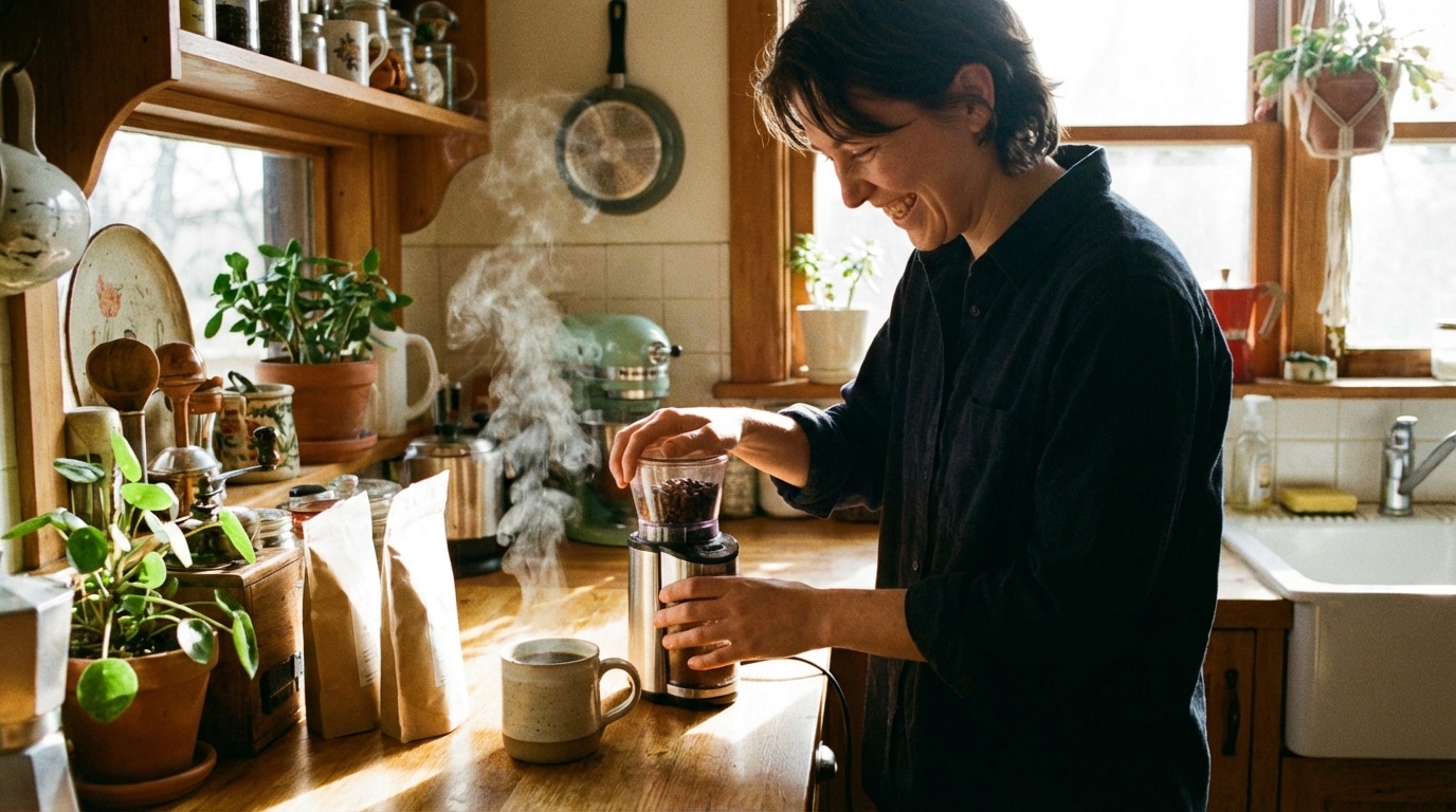 Rien n’égale l’odeur enveloppante du café que l’on vient tout juste de préparer. Même simplement ouvrir le couvercle du moulin déclenche un parfum intense et réconfortant, difficile à obtenir autrement. En quelques secondes, l’appartement se transforme en véritable torréfaction à l’ancienne.