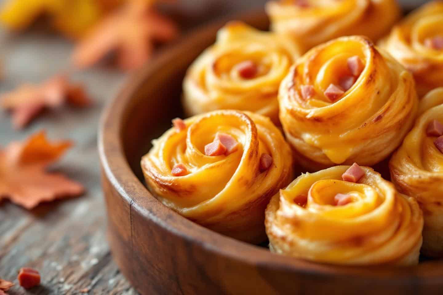 Aux portes de l’hiver, quand la lumière décline et que les soirées entre amis se font plus souvent en intérieur, l’heure est à la convivialité et aux petits plaisirs réconfortants. Sur la table, rien n’attire autant les mains qu’une assiette de bouchées feuilletées, dorées à souhait, à la fois ultra croustillantes et terriblement fondantes à l’intérieur. Le parfum chaleureux du fromage fondu, la saveur salée du jambon, tout enveloppé dans une pâte dorée qui s’effeuille sous la dent : voilà de quoi réveiller la gourmandise, transformer un simple apéritif en moment de fête ou réchauffer un plateau télé improvisé. Ces roulés sont la promesse de voir disparaître leur assiette en un clin d’œil, laissant derrière eux l’envie d’en refaire… encore et encore.
