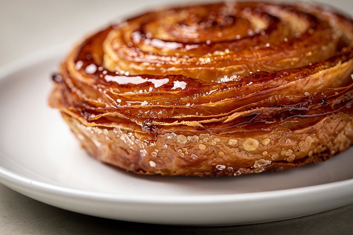 Pliage après pliage, le sucre se glisse entre les couches de pâte et fond lentement, formant un caramel translucide qui croque sous la dent. Inutile de chercher la perfection : les irrégularités donnent au kouign amann toute son âme rustique.