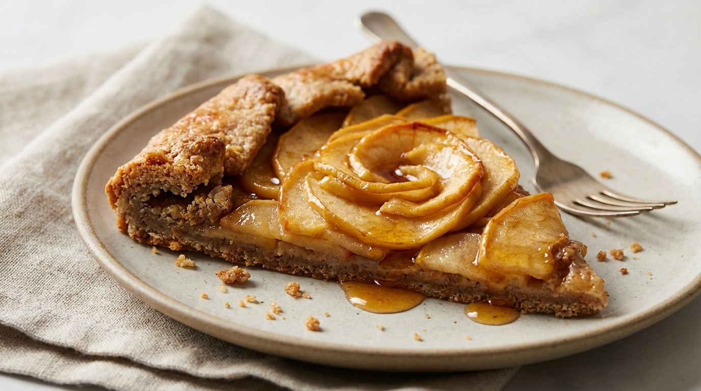 Le secret d’une pâte sablée parfaite réside dans le choix du sarrasin : cette farine sans gluten révèle une saveur unique, soutenue par le beurre bien froid effrité rapidement. Il ne faut surtout pas trop malaxer — juste de quoi lier, pour un résultat friable mais fondant. La rusticité du sarrasin se marie merveilleusement à la douceur des pommes et donne à la tarte un caractère inimitable.