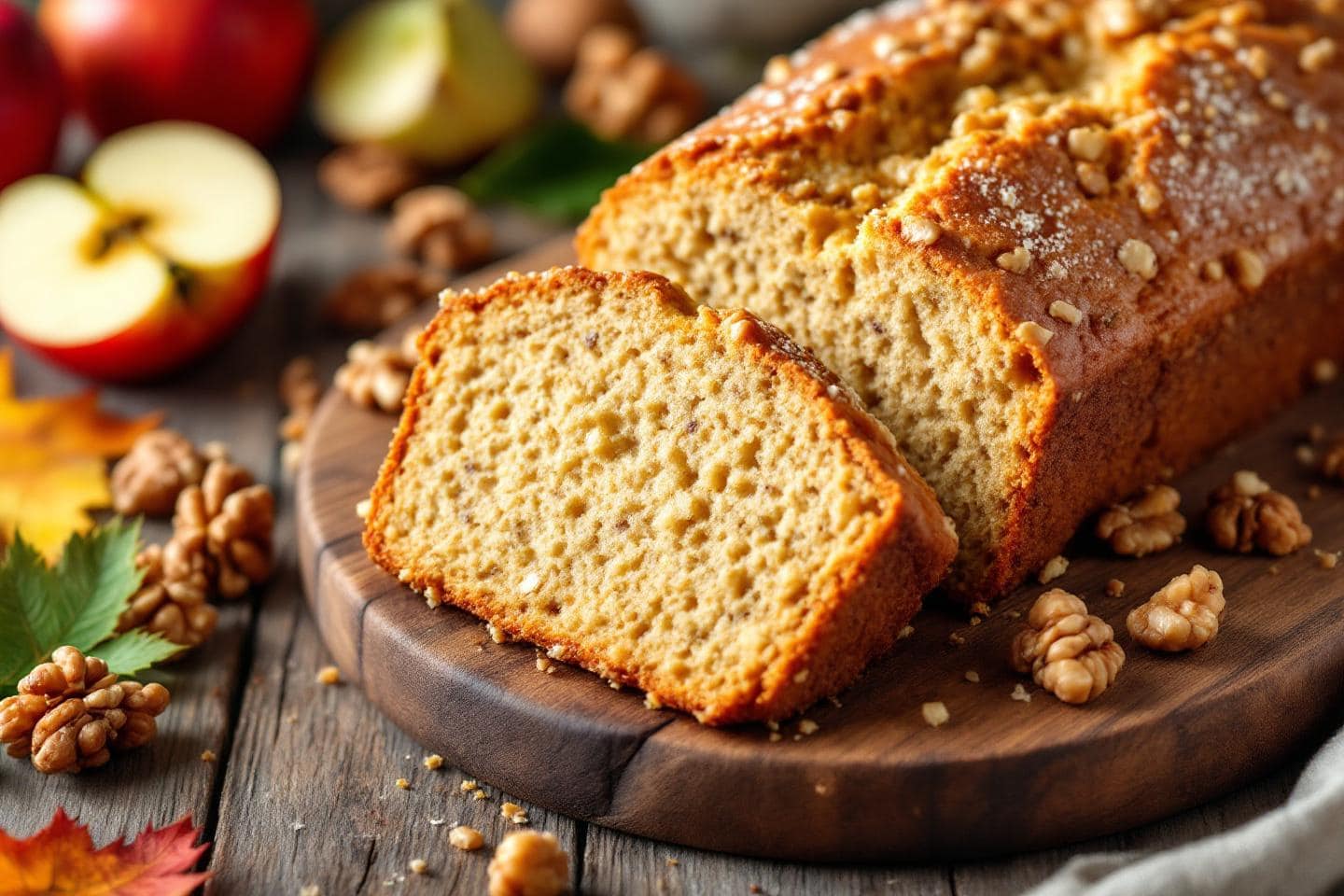 Lorsque les premiers frimas de novembre s’installent et que la lumière dorée de fin d’année illumine les fins d’après-midi, l’appel des douceurs généreuses se fait pressant sur les tables françaises. Rien n’apaise aussi délicieusement l’attente de l’hiver que le parfum chaud d’un cake pommes-noix tout juste sorti du four : sa croûte dorée cache un cœur aussi moelleux qu’une brioche, où les éclats de noix se nichent dans la pâte fruitée aux notes de cannelle. Parfait pour régaler petits et grands au goûter devant un chocolat chaud ou comme dessert improvisé, ce cake s’impose comme le réconfort suprême, l’alliance du rustique et du raffiné à chaque bouchée. La simplicité de sa préparation n’a d’égale que la richesse de ses saveurs : une véritable célébration des plaisirs d’automne et de la générosité de la pâtisserie maison.